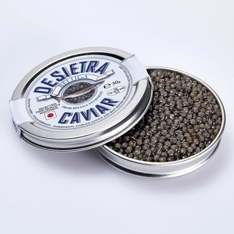 Desietra Osetra has a firm texture and rich nutty flavor. Desietra Osetra boasts medium sized pearls, and color that can range from light to dark brown. Many consider Desietra Osetra to be the best tasting of all caviar