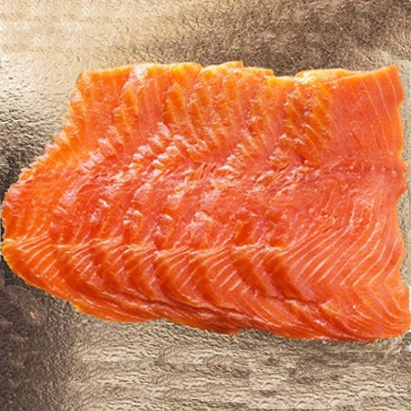 Delicately sliced smoked Scottish salmon layed back on skin. Naturally smoked in traditional brick kilns in the heart of the English Cotwolds over oak and beech wood.Laterally sliced (long cut). Fresh Smoked Salmon (Not frozen) with a 5 week shelf life.
